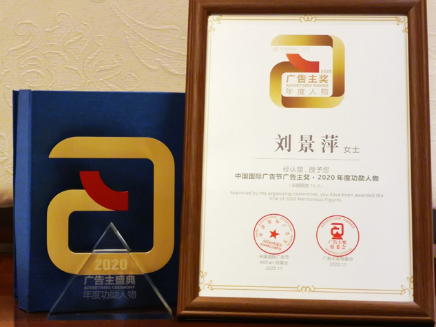 尊龙凯时集团刘景萍董事长喜获“中国国际广告节广告主奖?2020年度功勋人物”荣誉